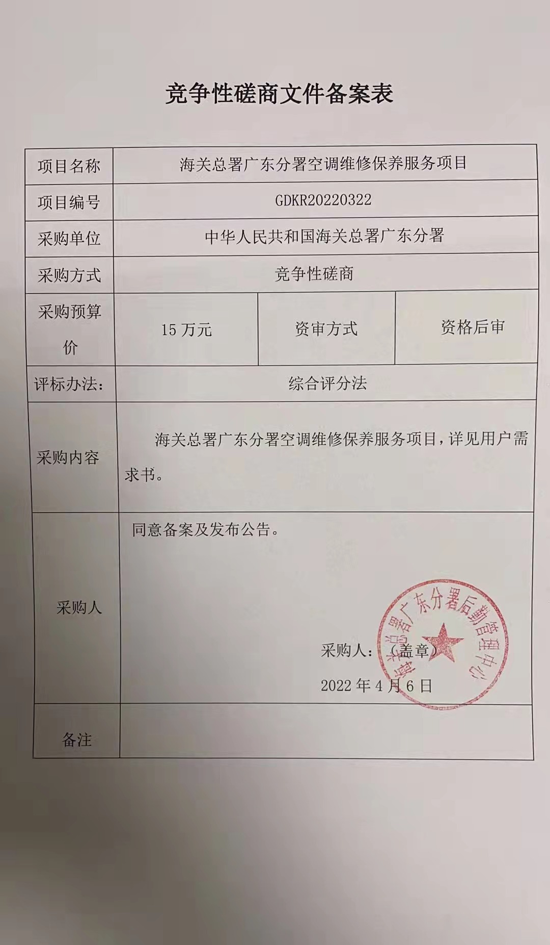 海關(guān)總署廣東分署空調(diào)維修保養(yǎng)服務(wù)項目磋商公告