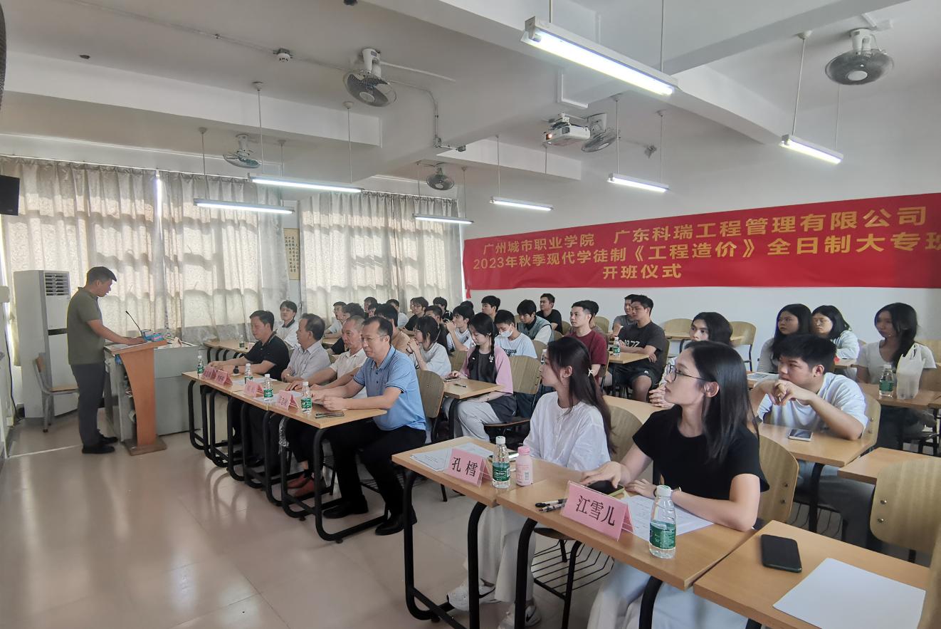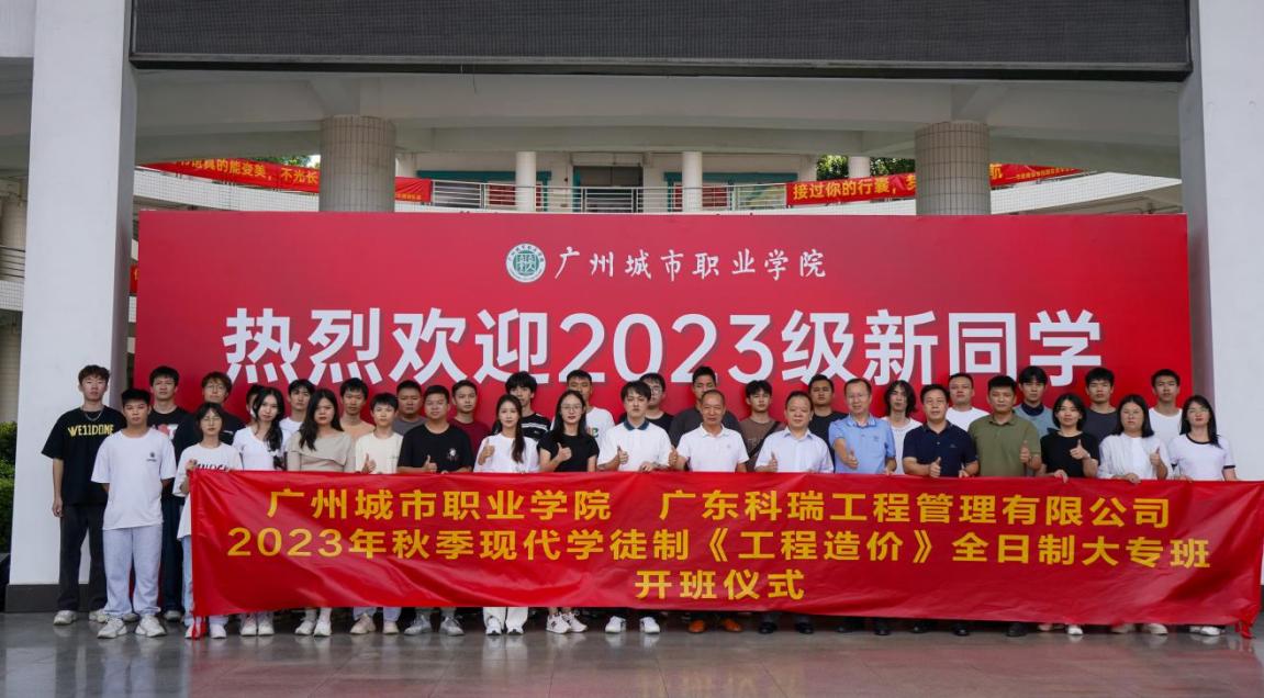 2023年10月14日下午,廣州城市職業(yè)學院攜手廣東科瑞工程管理有限公司隆重舉辦了2023年現(xiàn)代學徒制(工程造價)專業(yè)全日制大專班的開班儀式。廣州城市職業(yè)學院市政建設學院黨總支峻松書記、廣州城市職業(yè)學院市政建設學院張志敏副院長、廣東科瑞工程管理有限公司李新科董事長、廣東科瑞工程管理有限公司胡志雄副總經理出席,廣州城市職業(yè)學院市政建設學院徐磊老師、廣州城市職業(yè)學院市政建設學院江雪兒老師、廣東科瑞工程管理有限公司項目部林明基、廣東科瑞工程管理有限公司學徒制帶班老師孔樰及全體學員共同參加了開班儀式。