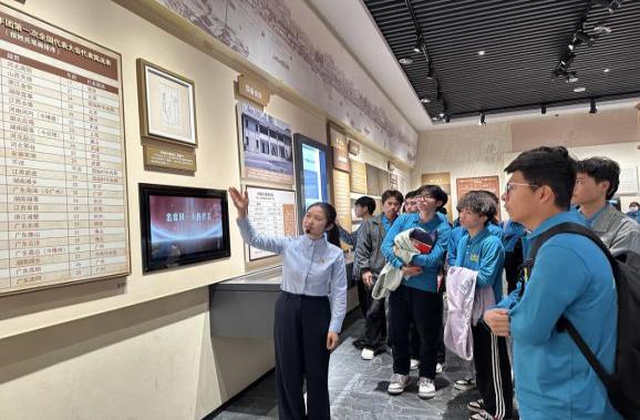 活動的足跡遍布團一大紀念館和毛澤東同志主辦農(nóng)民運動講習(xí)所舊址紀念館兩大歷史圣地。在團一大紀念館內(nèi),同學(xué)們仿佛被時光的車輪帶回那個激情燃燒的年代。每一件展品都仿佛在訴說著早期青年團組織的成長歷程,以及團一大勝利召開的喜悅。
