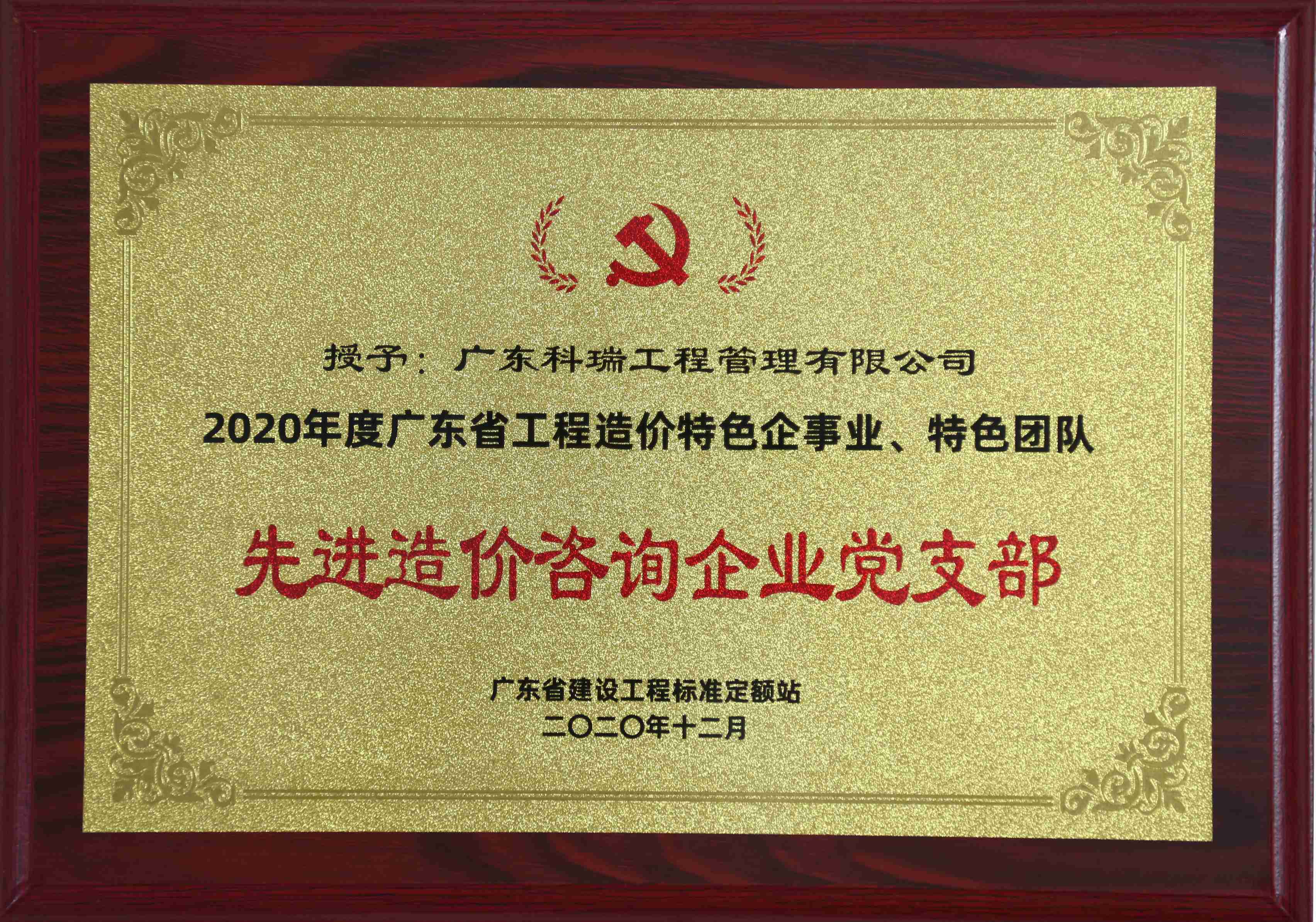 2021年1月6日,廣東科瑞工程管理有限公司黨支部喜獲“2020年度廣東省工程造價(jià)特色企事業(yè)、特色團(tuán)隊(duì)——先進(jìn)造價(jià)咨詢企業(yè)黨支部”榮譽(yù)稱號。 被評為先進(jìn)是鼓勵,更是鞭策,廣東科瑞工程管理有限公司黨支部一定會在上級黨組織的領(lǐng)導(dǎo)下,認(rèn)真學(xué)習(xí)其他先進(jìn)基層黨組織的經(jīng)驗(yàn)和作法,以改革創(chuàng)新精神全面推進(jìn)黨的建設(shè),以優(yōu)異答卷迎接建黨100周年。