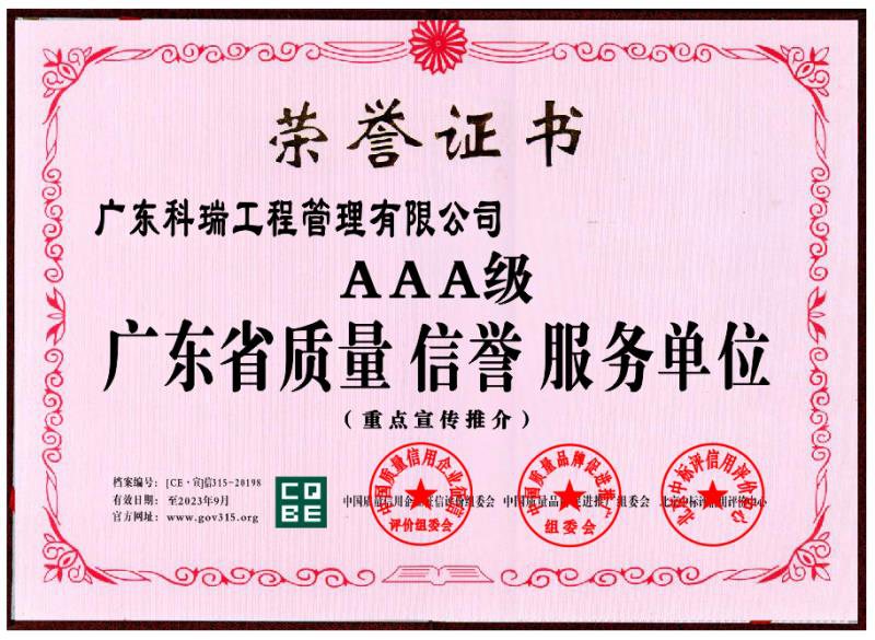 廣東省質(zhì)量信譽(yù)服務(wù)單位