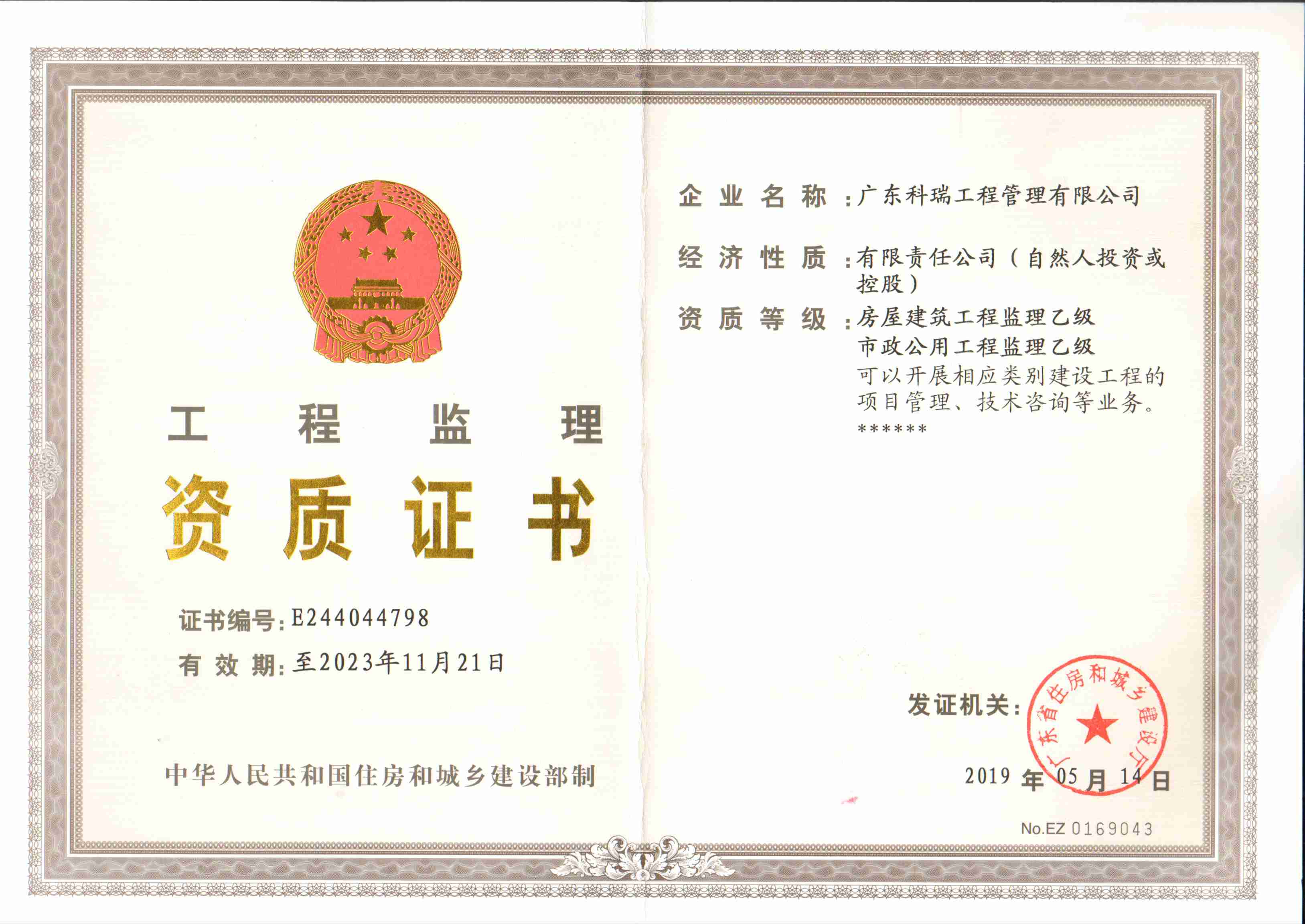 喜訊:公司申報的房屋建筑工程和市政公用工程的工程監(jiān)理乙級資質(zhì)通過了廣東省住房和城鄉(xiāng)建設(shè)廳批準,并取得了相關(guān)資質(zhì)證書。此次資質(zhì)申請工作的順利完成,必會給公司的業(yè)務(wù)得到進一步的鞏固和提升,并使公司的業(yè)務(wù)范圍得到進一步擴展和延伸,為公司的發(fā)展奠定了更為堅實的基礎(chǔ)。公司每一個成就的取得都離不開全體員工的辛勤付出和社會各界人士對本公司的大力支持,今后我們更要繼續(xù)做好各項工作,努力提高業(yè)務(wù)水平、拓展業(yè)務(wù)范圍,能夠更好、更全方位的為客戶提供優(yōu)質(zhì)服務(wù)。